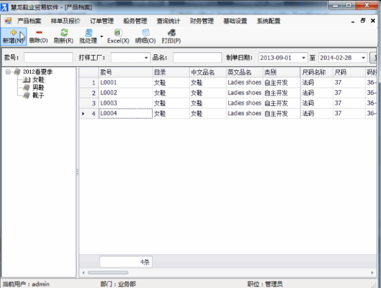 产品设计的关键是要型体或款式要能跟上时代潮流,设计出来的款式要能中单率>60%以上,否则设计师的工作要考虑不足之处。规划出设计目标后,在慧龙软件的鞋业ERP上能随时管控到开发的进程,并能针对每一个师父进行绩效的统计,判别每个师父的工作效率。