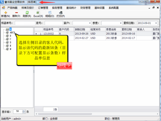 季度设计规划 →样品单 →开发进度 →绩效统计 →鞋展 →《快速接单系统》 →客户有意向或有下单转正式开发阶段。